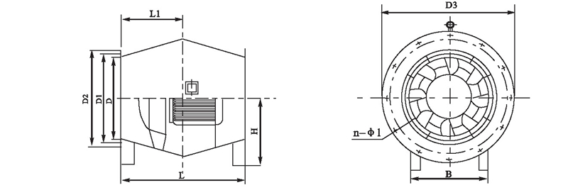 注:風機出廠時法蘭一般不打孔。n-φ1僅供參考,若要打孔請用戶在訂貨時說明.