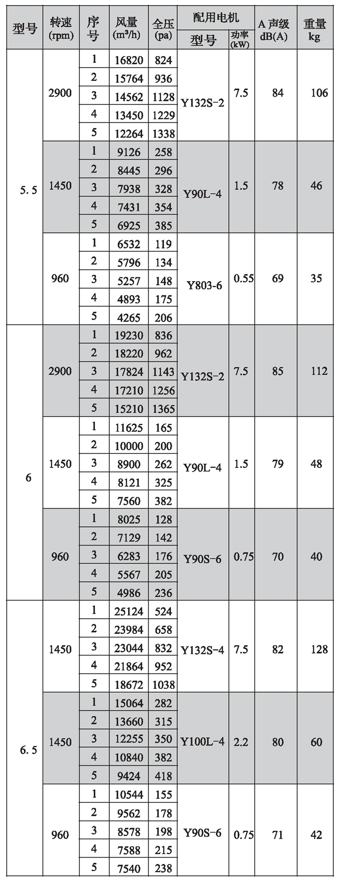 SWF-II系列混流式風(fēng)機(jī)性能參數(shù)(1)