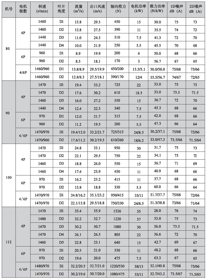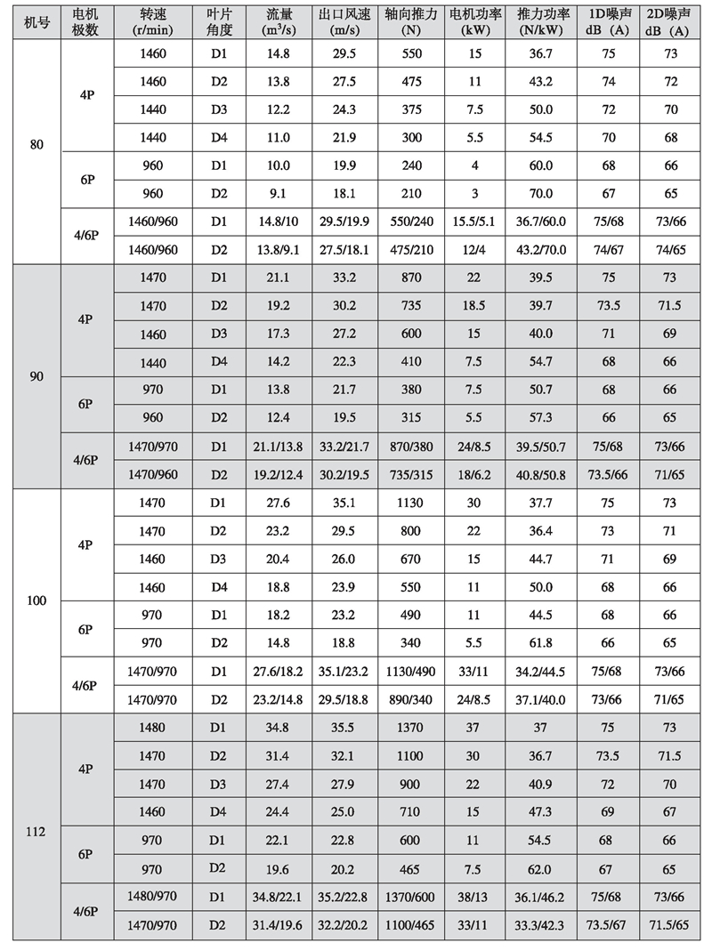 五、K型系列隧道射流風機性能參數表